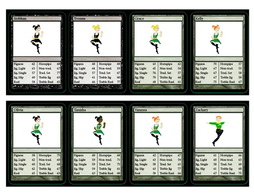 Talented, hard-working, and adorable, the dancers in these four troupes will do anything to win, including playing sabotage cards like Wig Fail or Stage Mixup or even calling down Irish fairy curses on their foes. A surprisingly vicious competition for the most prizes at an important dance contest called a feis ("fesh".)