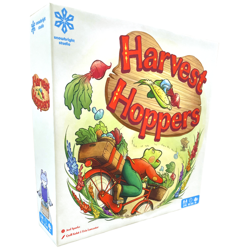 Harvest Hoppers is Snowbright Studio’s new “cute but cutthroat” board game, delivering heartwarming fun for 2 to 6 players over 30 to 60 minutes. This strategy game with area control components comes with dozens of produce tokens, uniquely configured neighborhood maps, and a heapin’ handful of adorable Hoptop bicycle delivery antics.